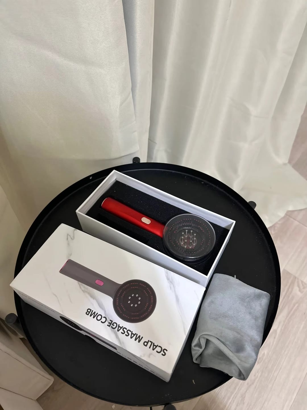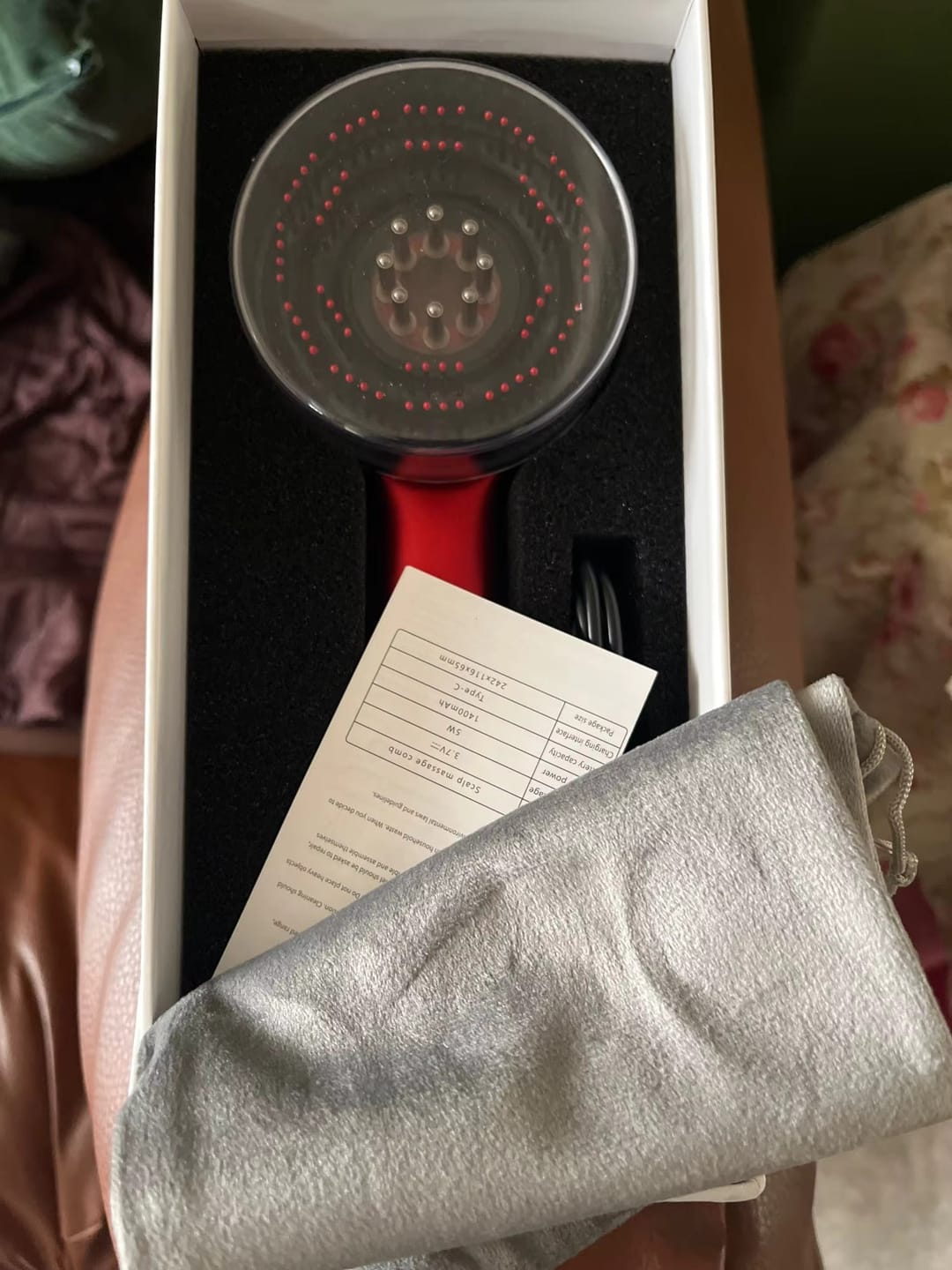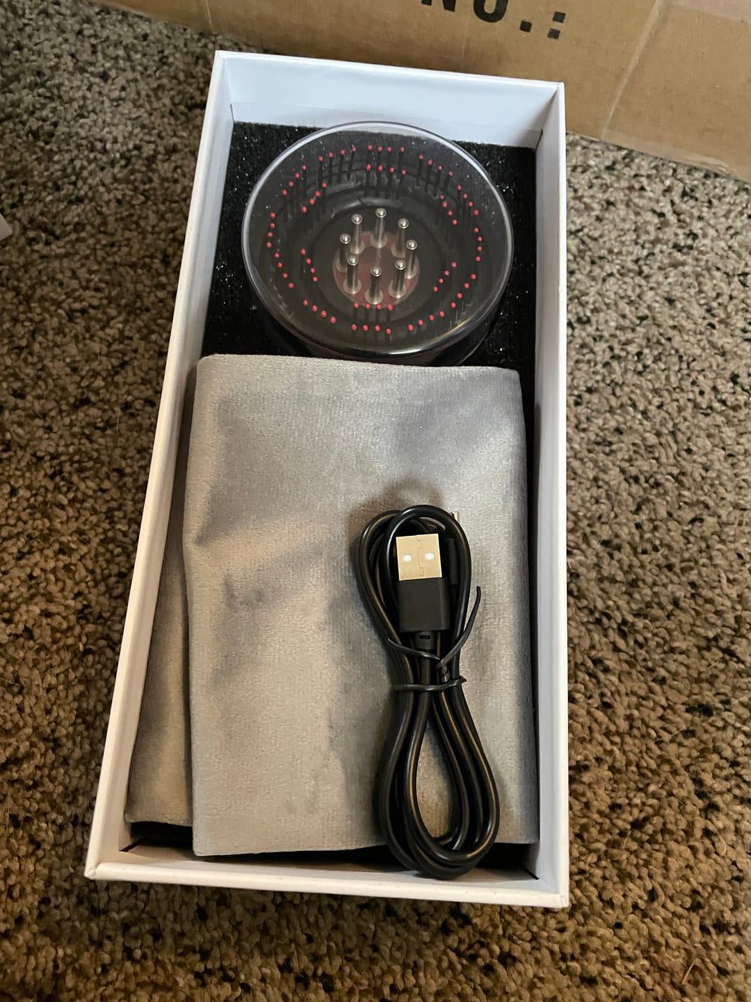 beautiful ✨I was afraid it would be packed bad but the box is very protective and beautiful. I immediately pressed the button and it started working, has different modes, tried on my scalp it was really relaxing, I already have a vibrating oil device too so I didn't tried the liquids compartment but it still look it can be easily cleaned.